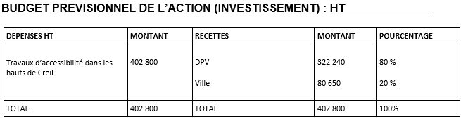 Cette mission se fait dans la continuité de l’opération : Réalisation d’un Plan de mise en Accessibilité de la Voirie et des aménagements des Espaces publics (PAVE) sur l'ensemble de la commune de Creil retenue dans la cadre de la Dotation politique de la ville 2015.