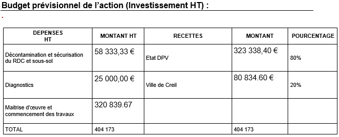 Le but étant de rapidement rouvrir l’Espace Buh à la population Creilloise.